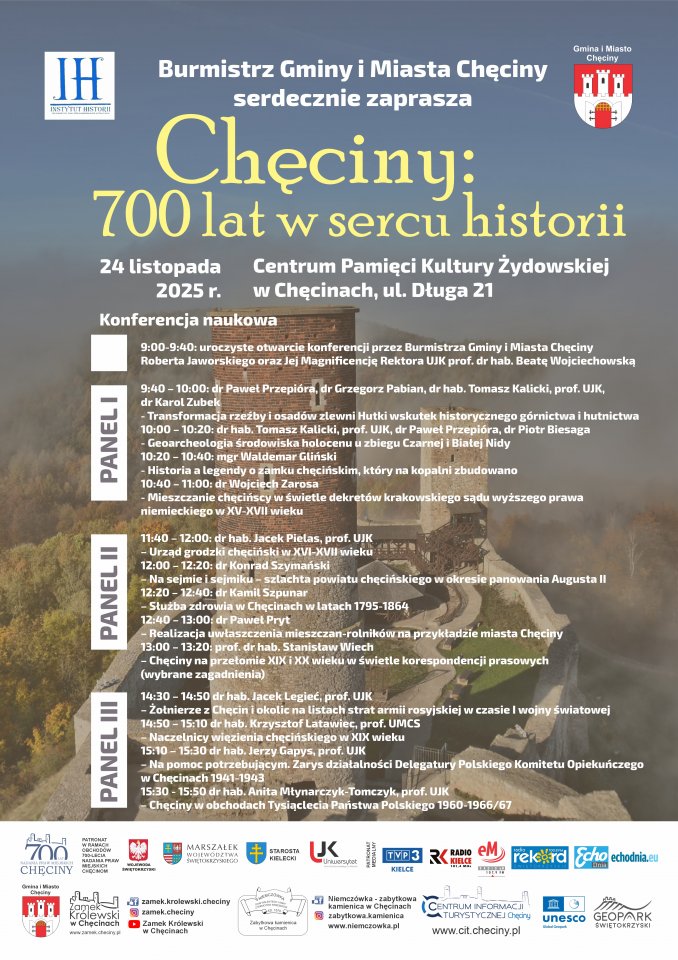 Już 24 listopada 2025 r. w Centrum Pamięci Kultury Żydowskiej w Chęcinach odbędzie się konferencja naukowa „Chęciny: 700 lat w sercu historii”. To całodniowe spotkanie z pasjonującą przeszłością miasta, które od wieków inspiruje badaczy, podróżników i miłośników dziejów.