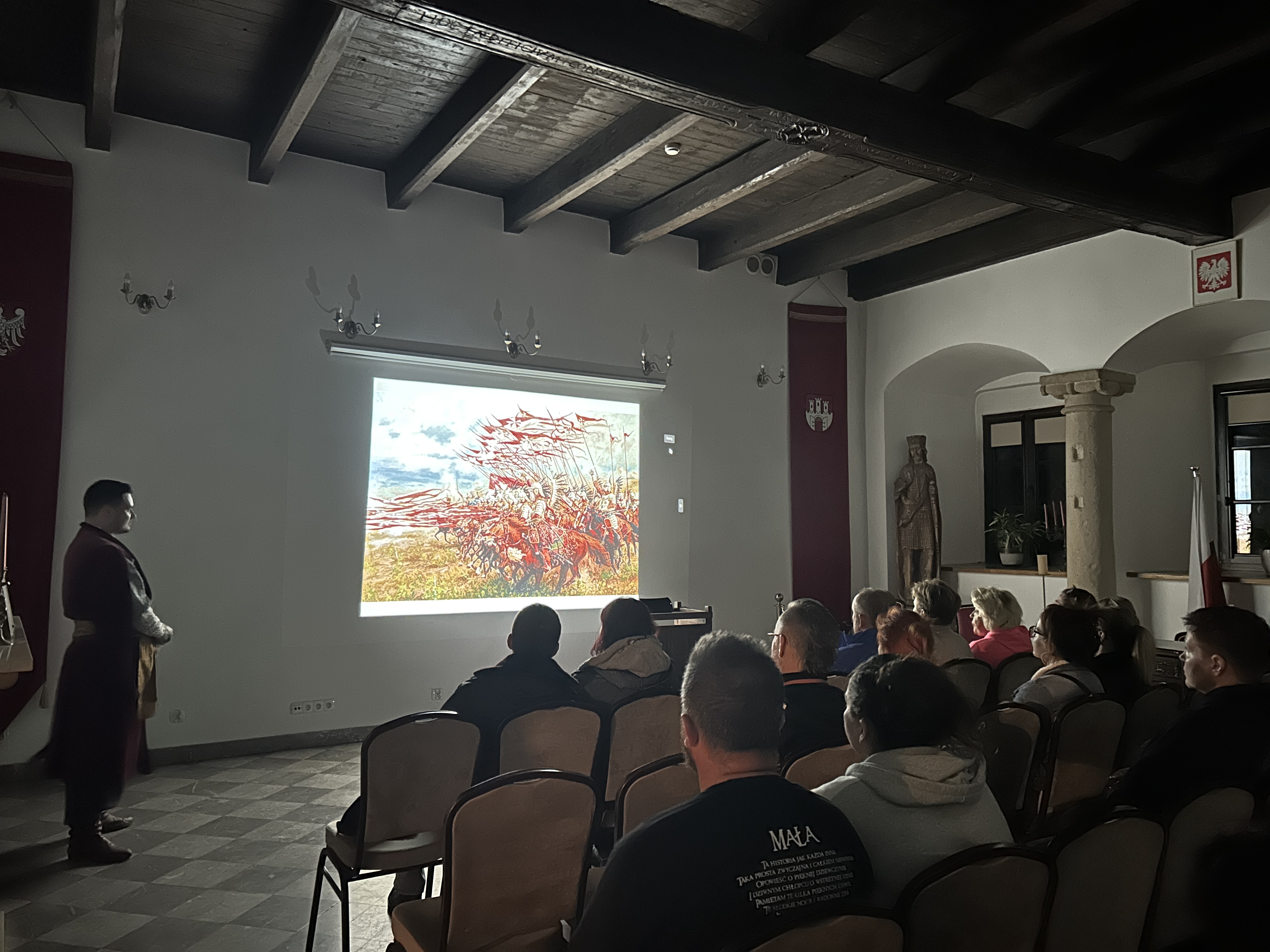 Sobotnie wydarzenie rozpoczęliśmy od prelekcji, podczas której przewodnik przybliżył postać Pana Michała Wołodyjowskiego – zarówno tego znanego z kart powieści Henryka Sienkiewicza, jak i bohatera kultowego filmu.