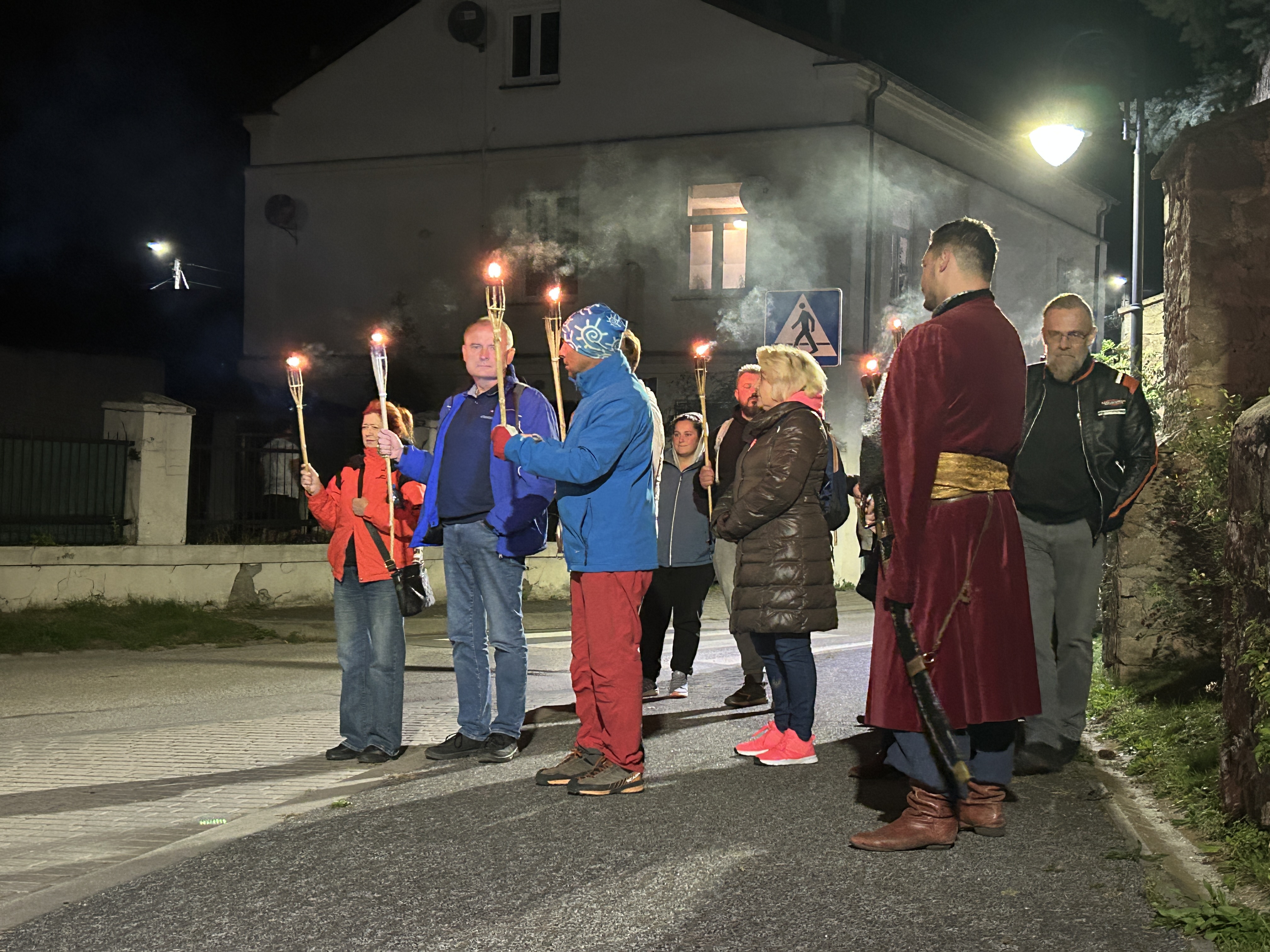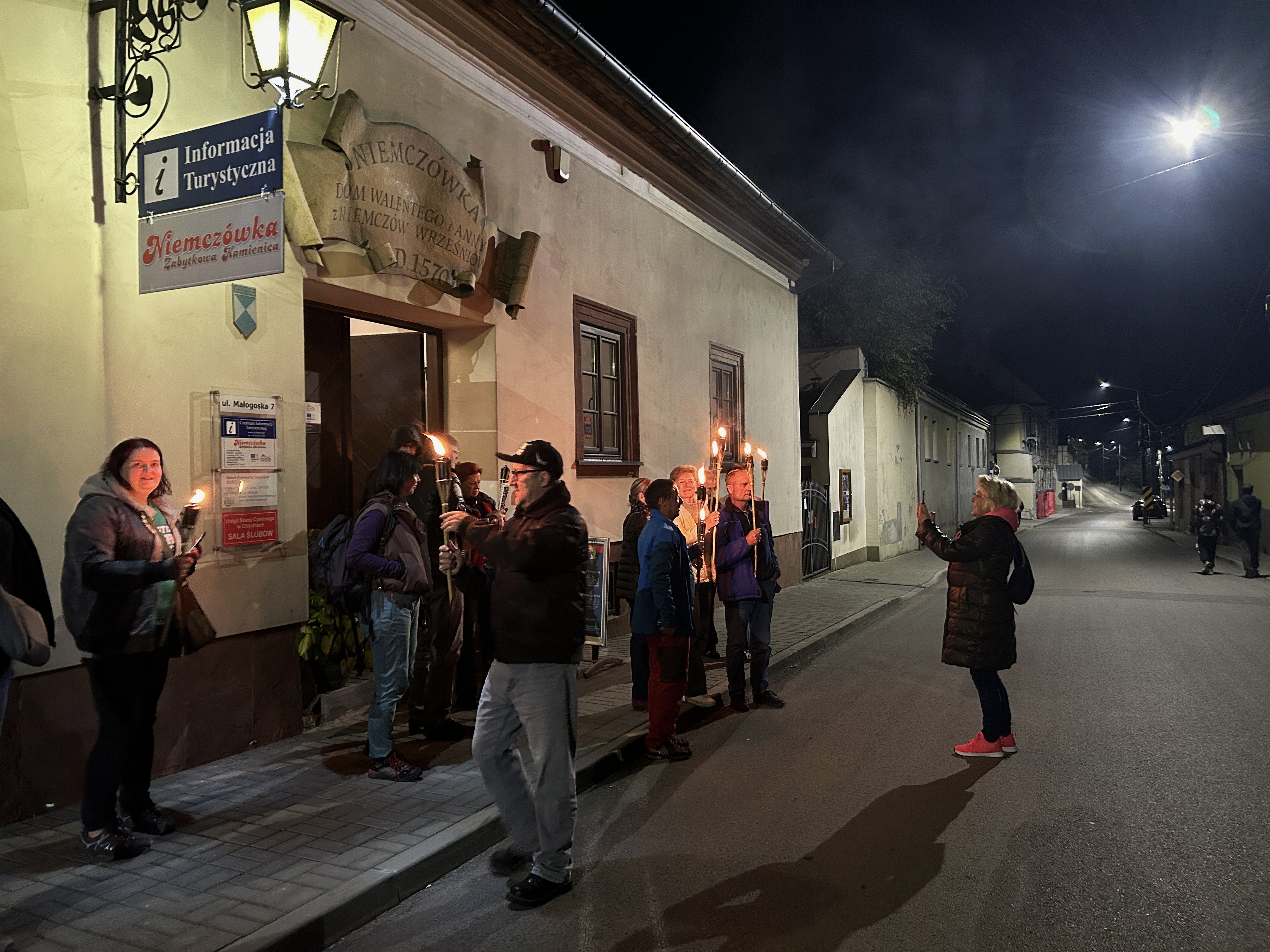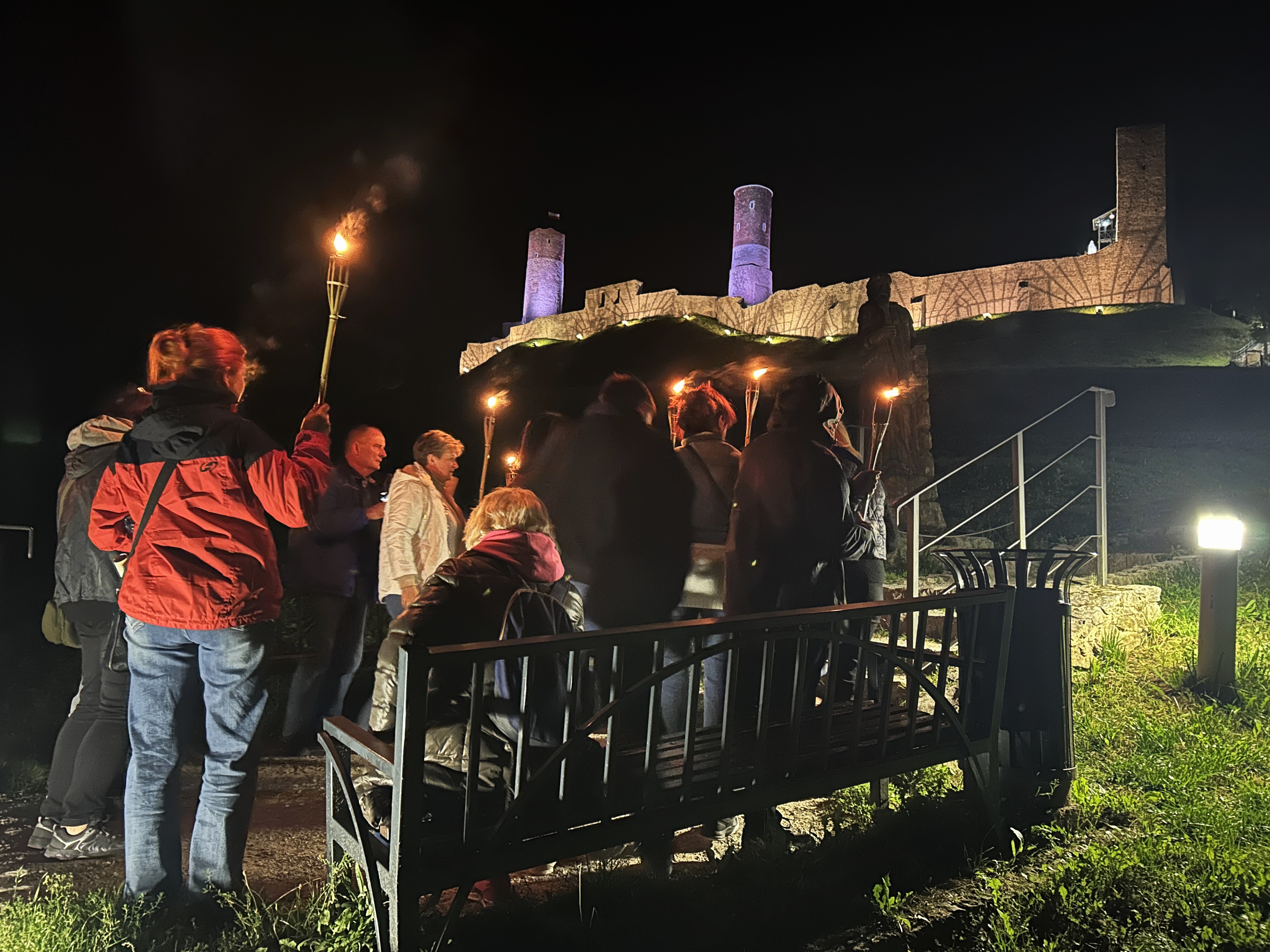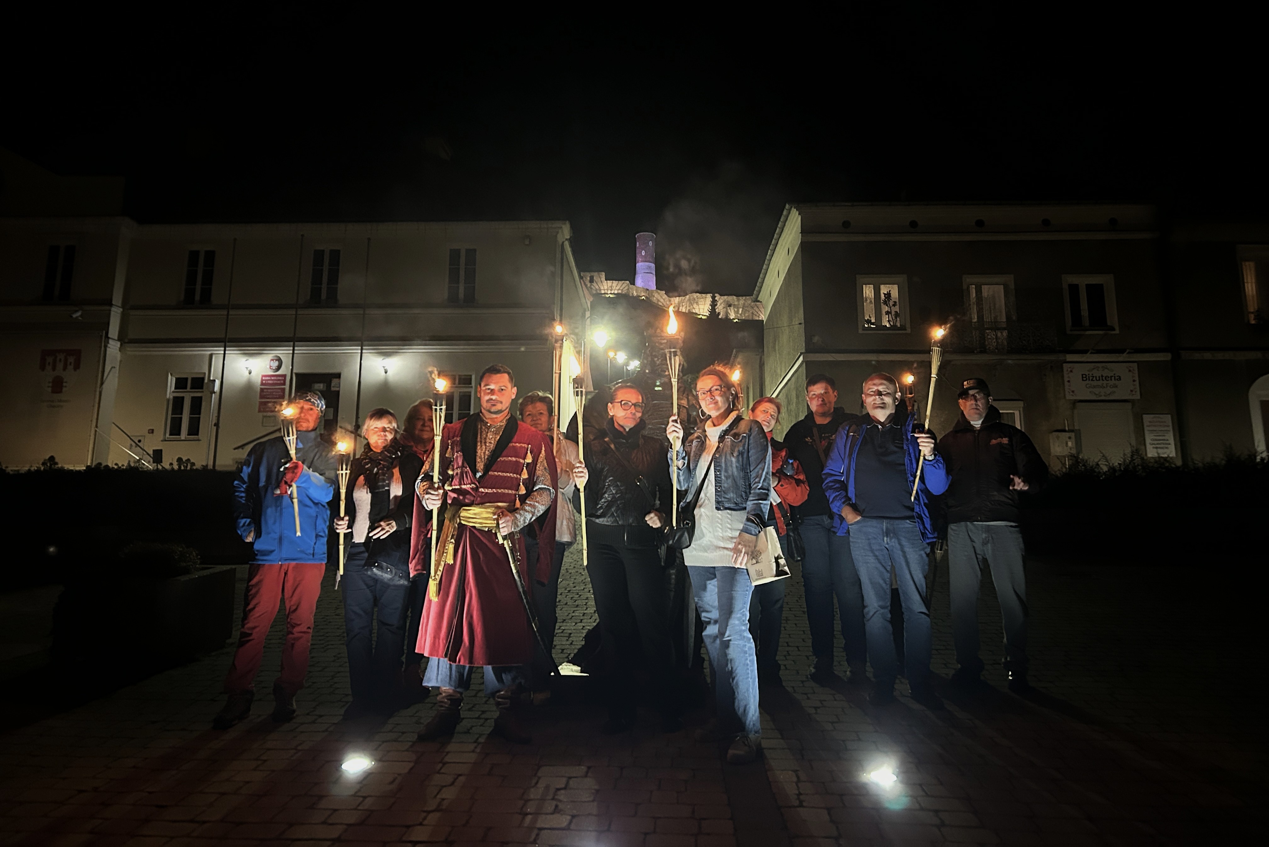 Następnie przy świetle pochodni, wyruszyliśmy uliczkami Chęcin, poznając dzieje napotkanych zabytków i ciekawostki związane z ekranizacją.