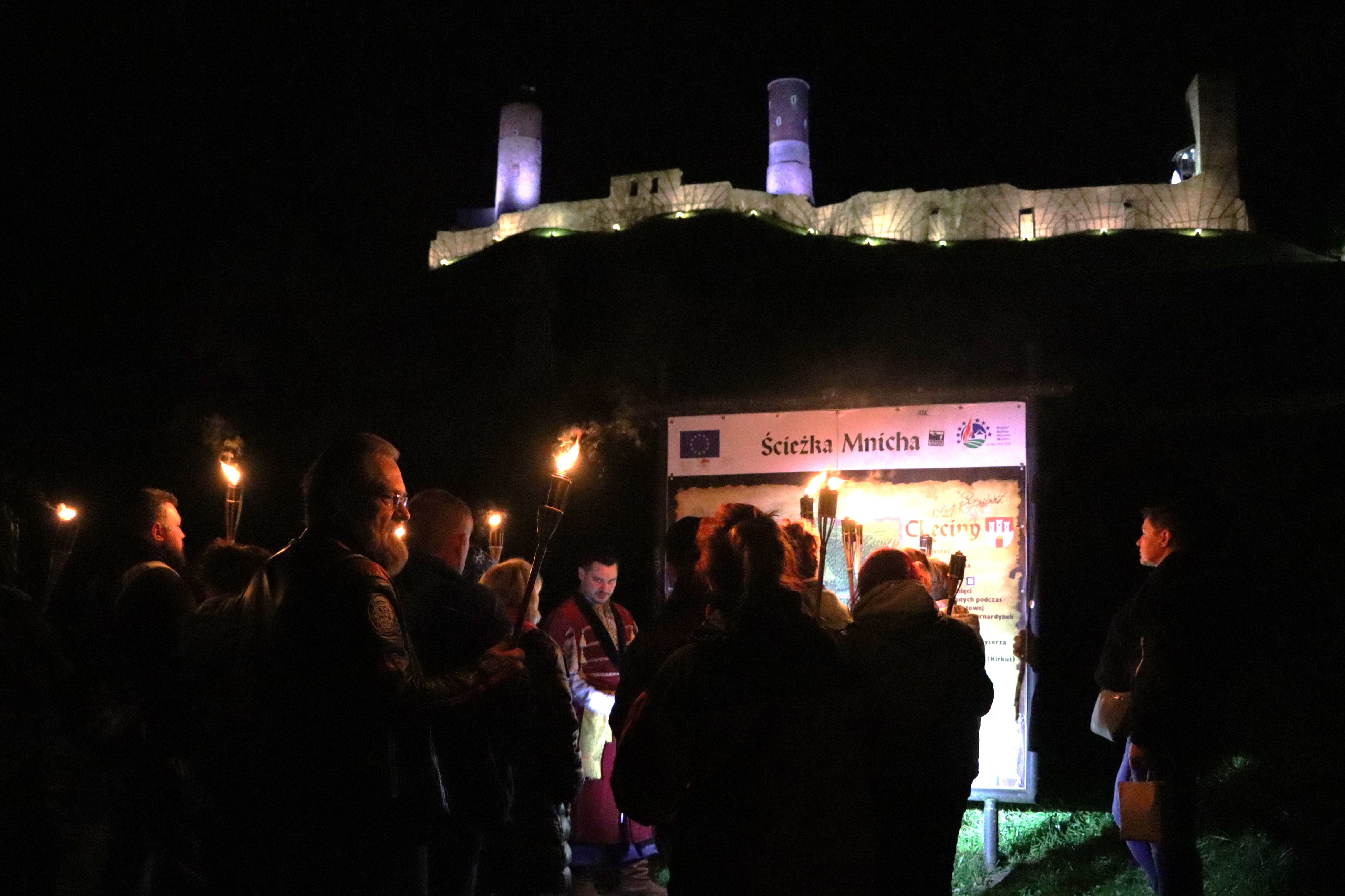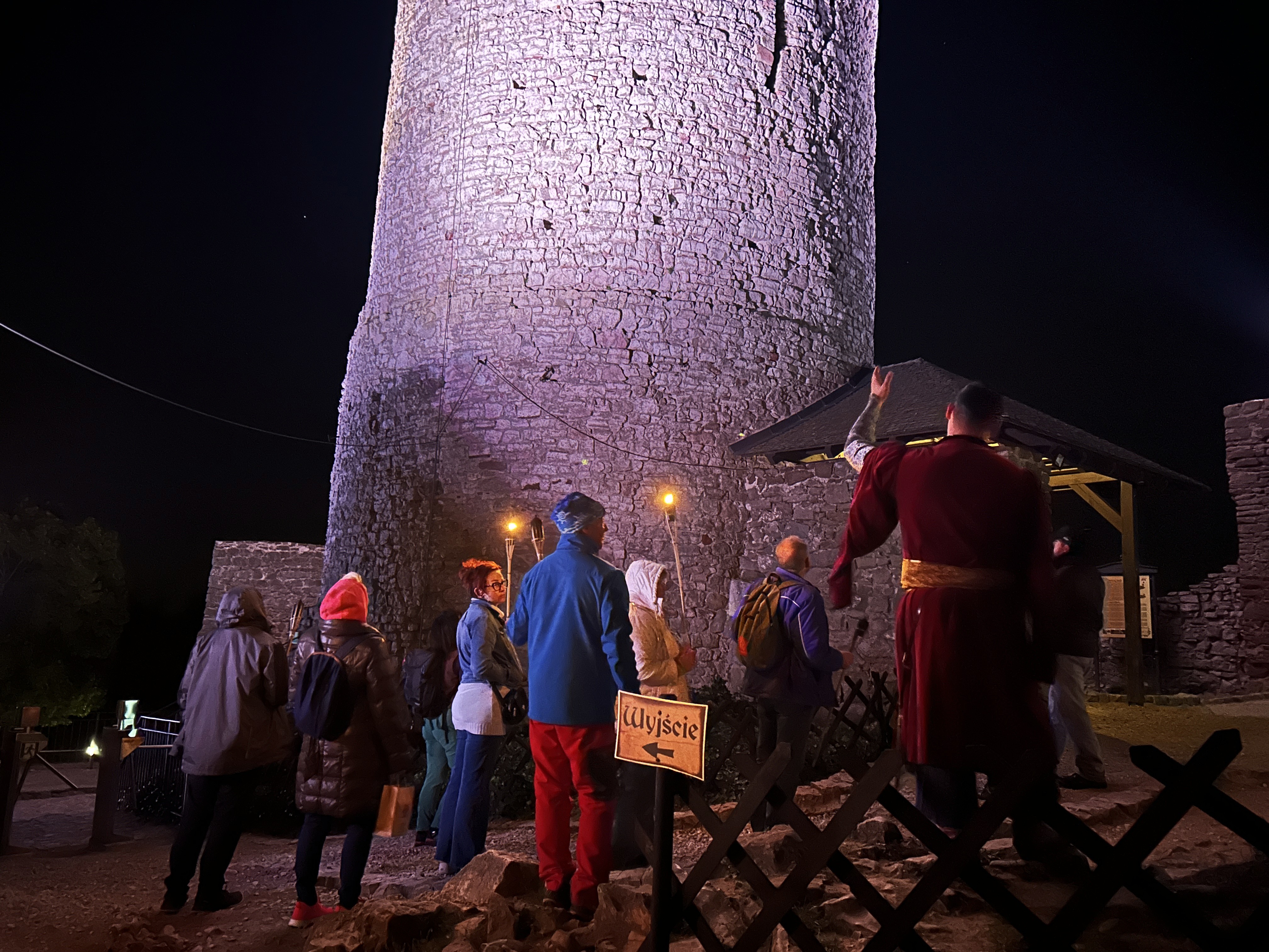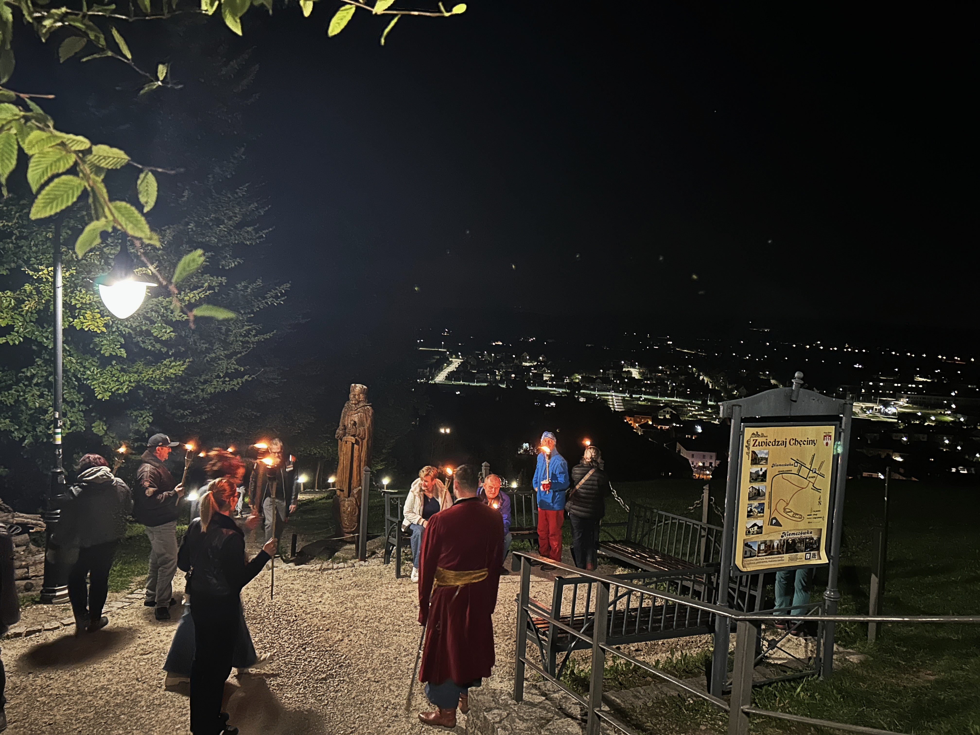 Następnie przy świetle pochodni, wyruszyliśmy uliczkami Chęcin, poznając dzieje napotkanych zabytków i ciekawostki związane z ekranizacją.