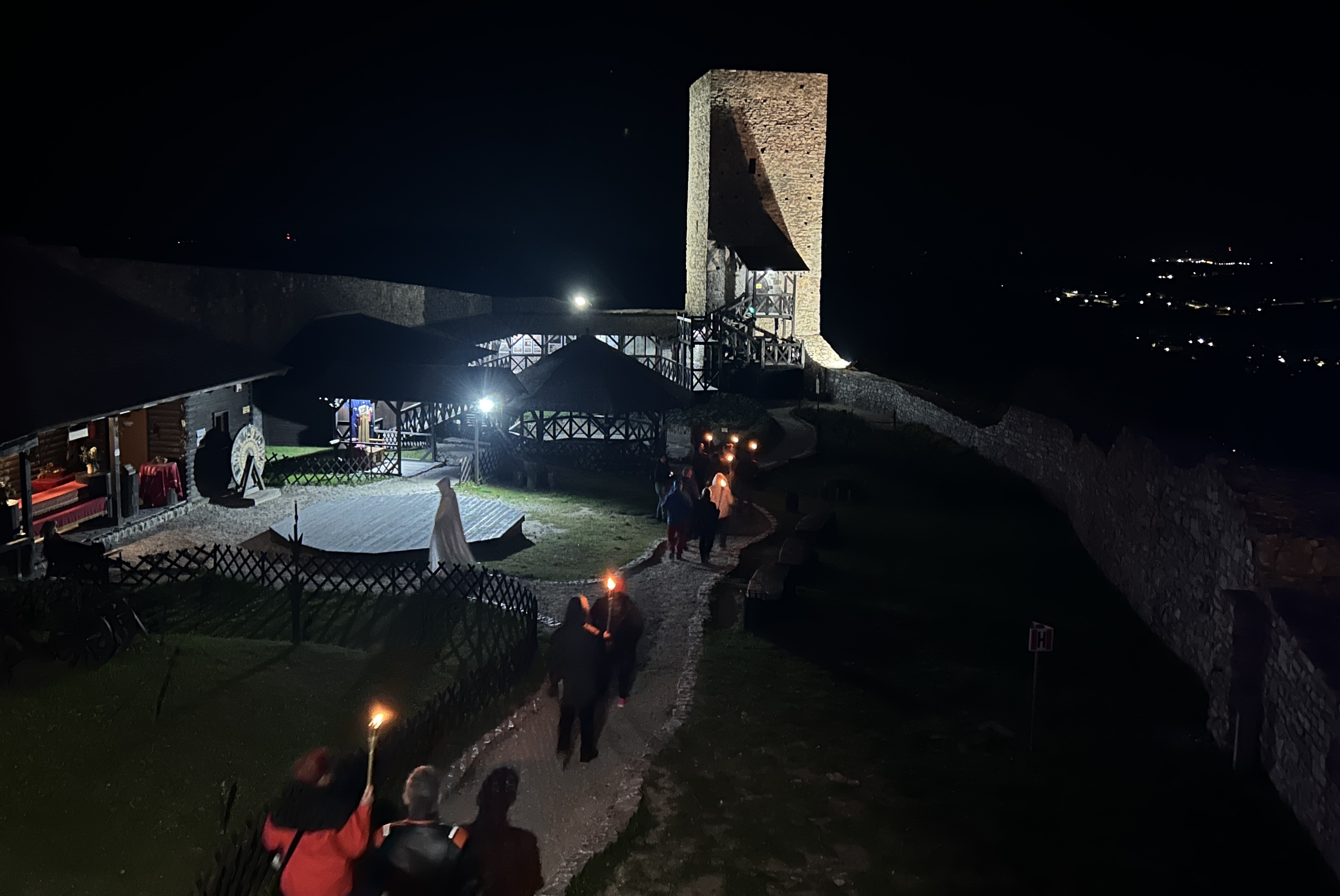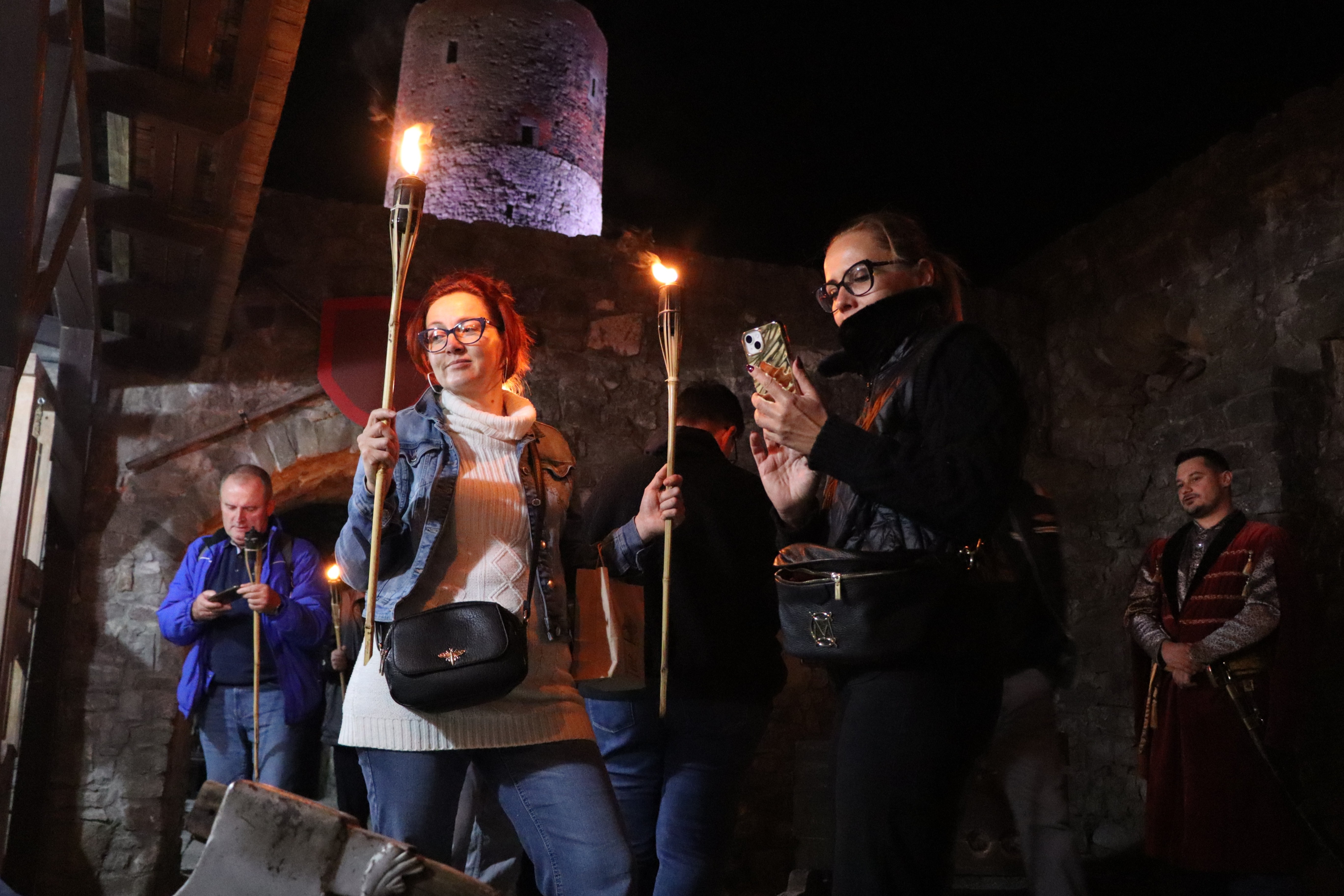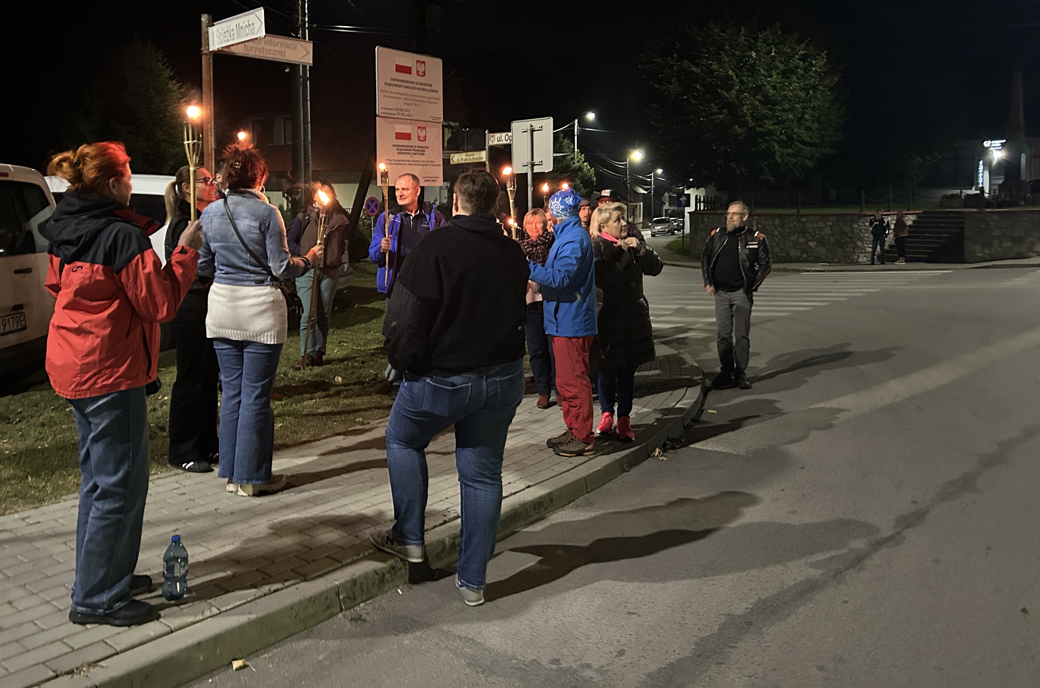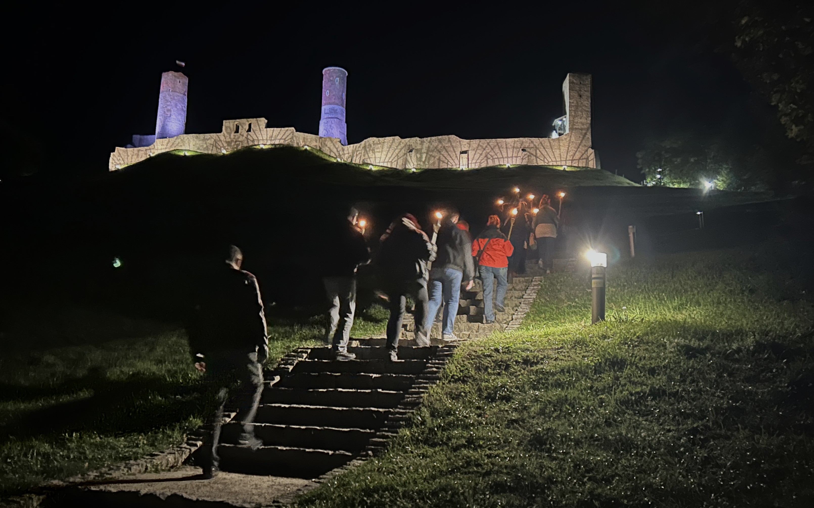 Następnie przy świetle pochodni, wyruszyliśmy uliczkami Chęcin, poznając dzieje napotkanych zabytków i ciekawostki związane z ekranizacją.
