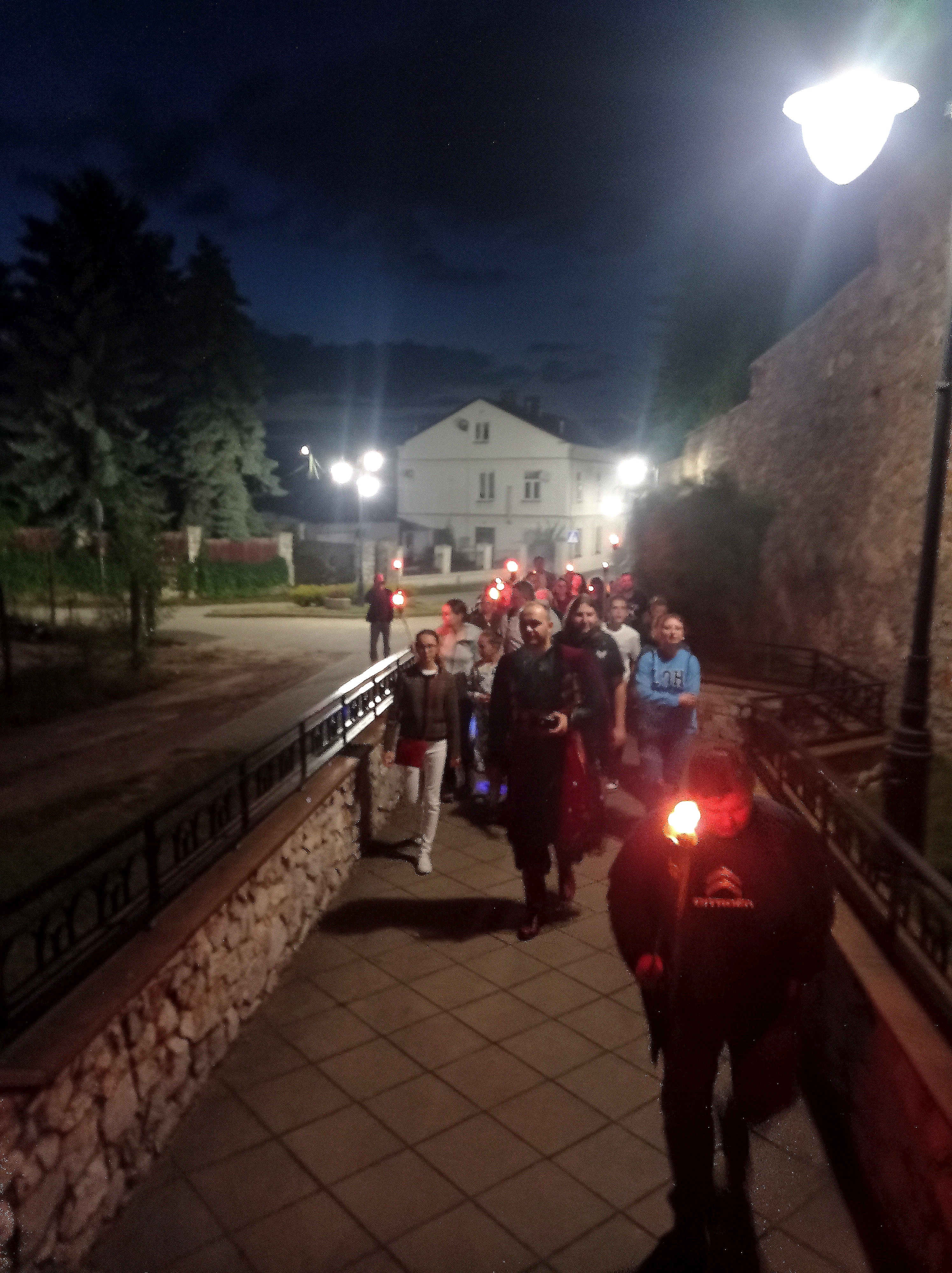 Kulminacyjnym momentem „Zwiedzania” było wyjście do miasta pod osłoną nocy. Uczestnicy wzięli udział w oprowadzaniu miejscami, gdzie kręcone były sceny w samych Chęcinach, po czym udano się schodami w górę stoku, prowadzącego do samego zamku. Tam, przy świetle pochodni i towarzystwie ducha Białej Damy, przechadzającego się po murach, zwiedzający wstąpili w progi warowni, mogąc ją zobaczyć przy świetle iluminacji. Całość wydarzenia zakończyła się na Rynku Górnym w Chęcinach.