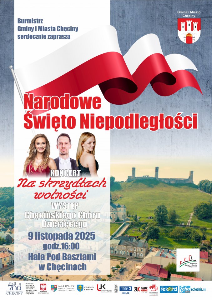 Zbliża się Narodowe Święto Niepodległości! Z tej okazji burmistrz Gminy i Miasta Chęciny Robert Jaworski serdecznie zaprasza na wyjątkowy koncert pełen muzyki, emocji i wzruszeń.