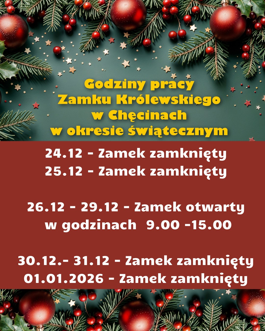Godziny otwarcia Zamku Królewskiego w Chęcinach w okresie świątecznym